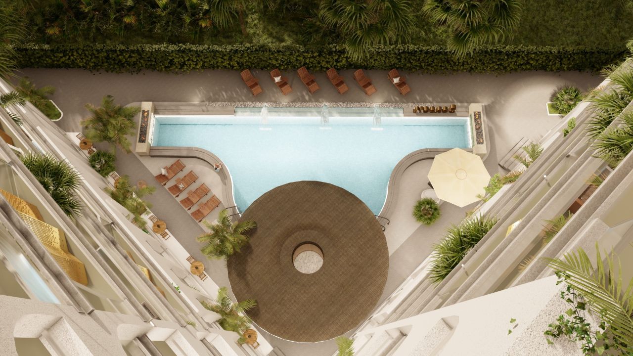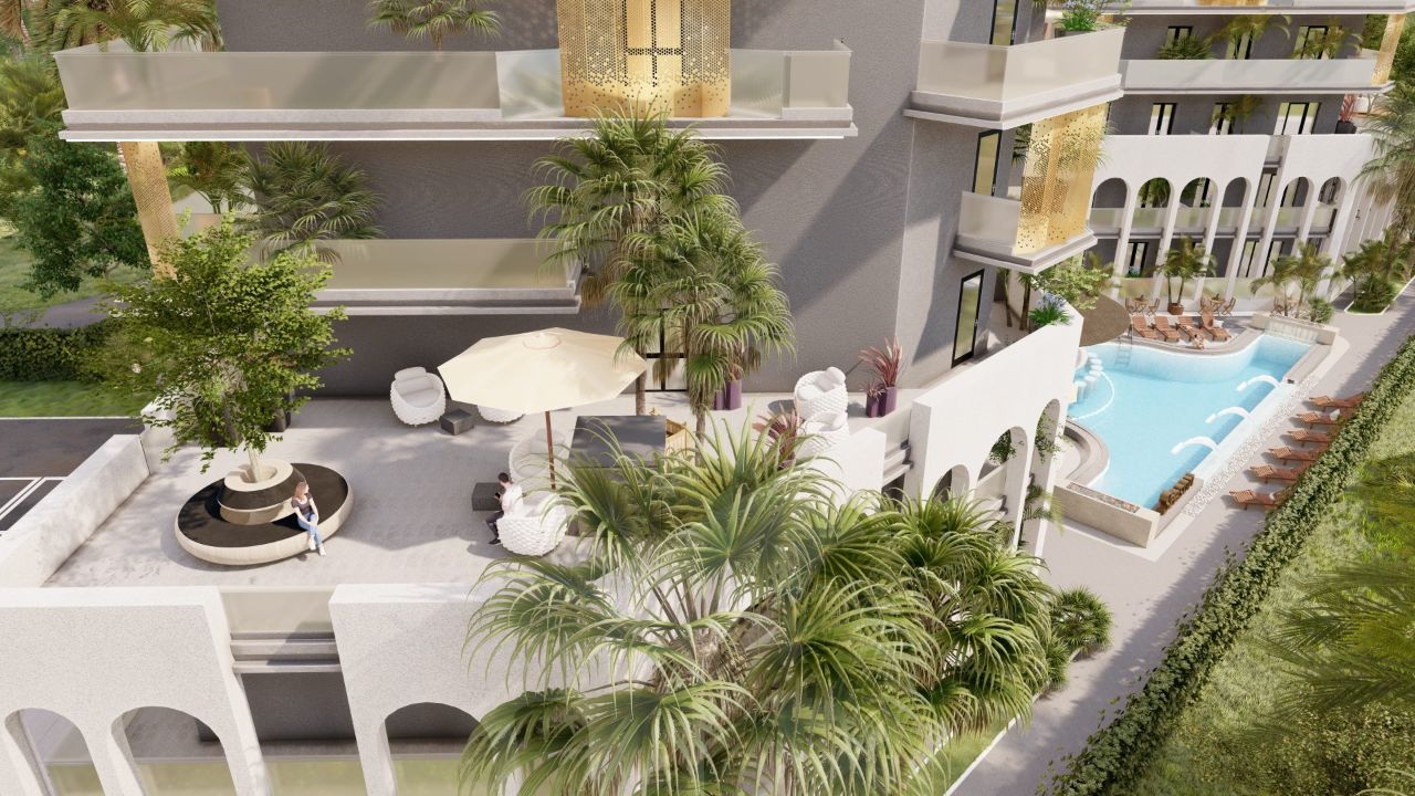 Комплекс имеет просторную придомовую территорию с оборудованной закрытой детской площадкой, комфортабельную зону лобби для уютного ожидания заселения и рабочих встреч, подогреваемый всесезонный бассейн с баром.